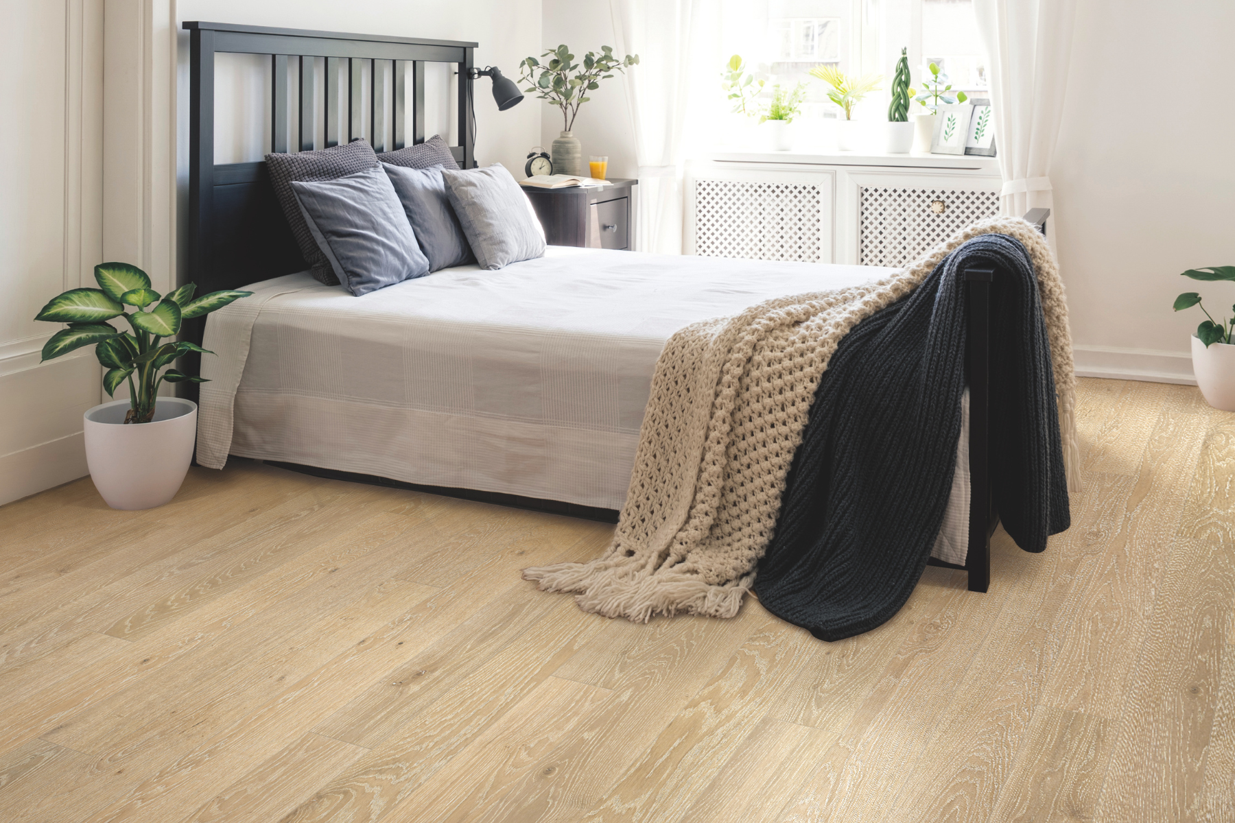 White Wash enhances European oak with a sun-bleached look, highlighting its natural grain in a soft, weathered finish. These engineered planks, 14mm to 20mm thick, blend beach-house warmth with lasting strength. The pale base brightens interiors, while a subtle grain texture keeps the authentic oak feel. Finished in an ultra matte chalk coating, it stays true without yellowing, offering a refined yet natural flooring option.