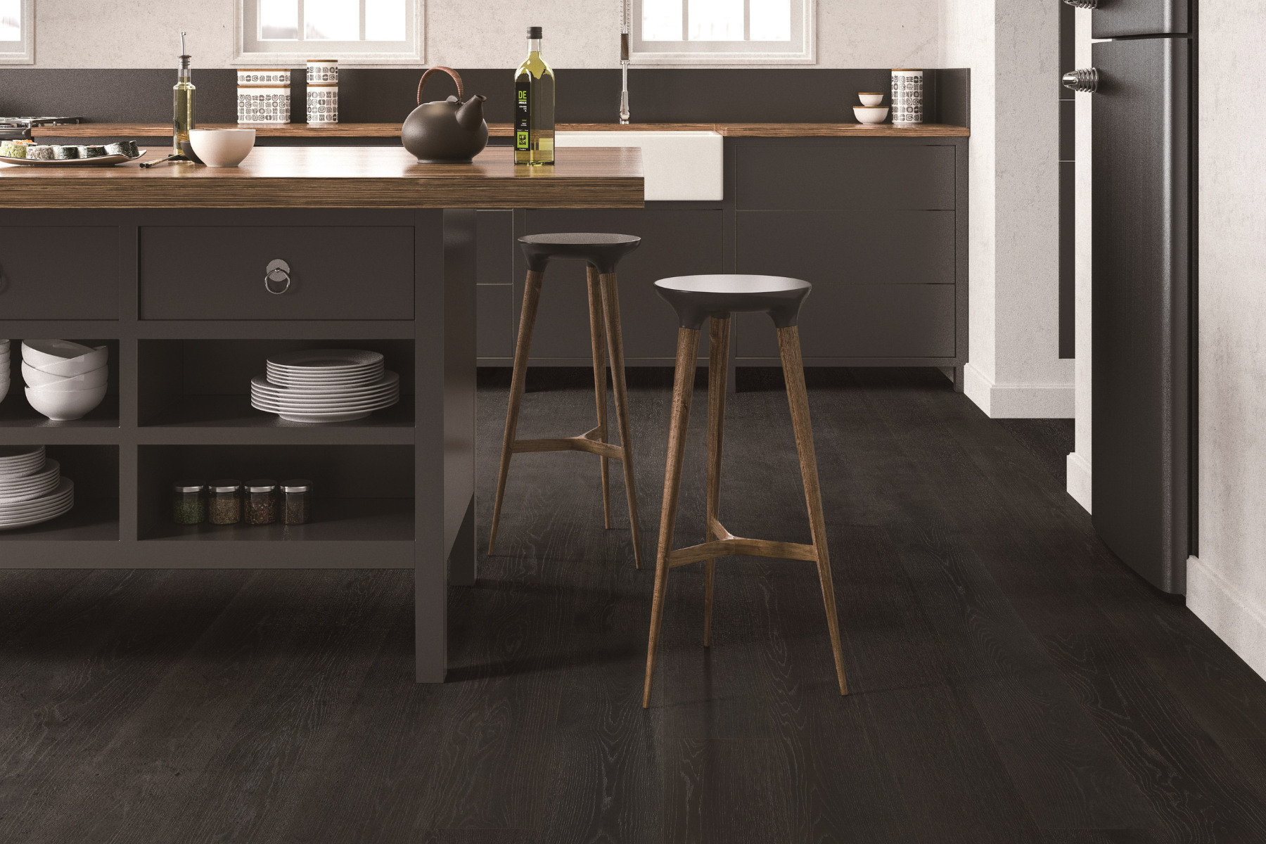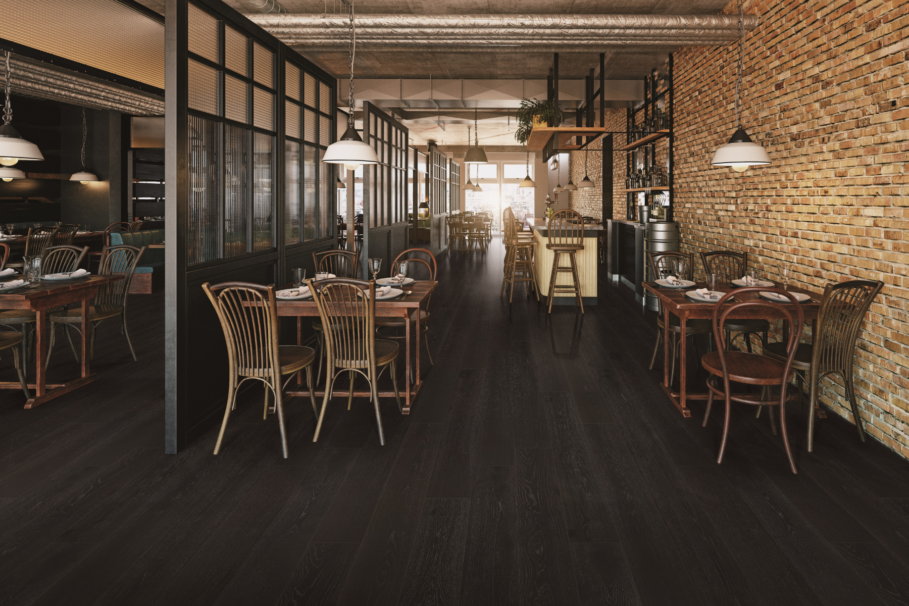 Tuxedo offers a refined 14mm engineered European oak floor with deep charcoal and warm tones. Its ultra-matte finish resists fingerprints and feels smooth, making it ideal for elegant spaces like galleries and boutique hotels. This floor combines durability with sophisticated style.