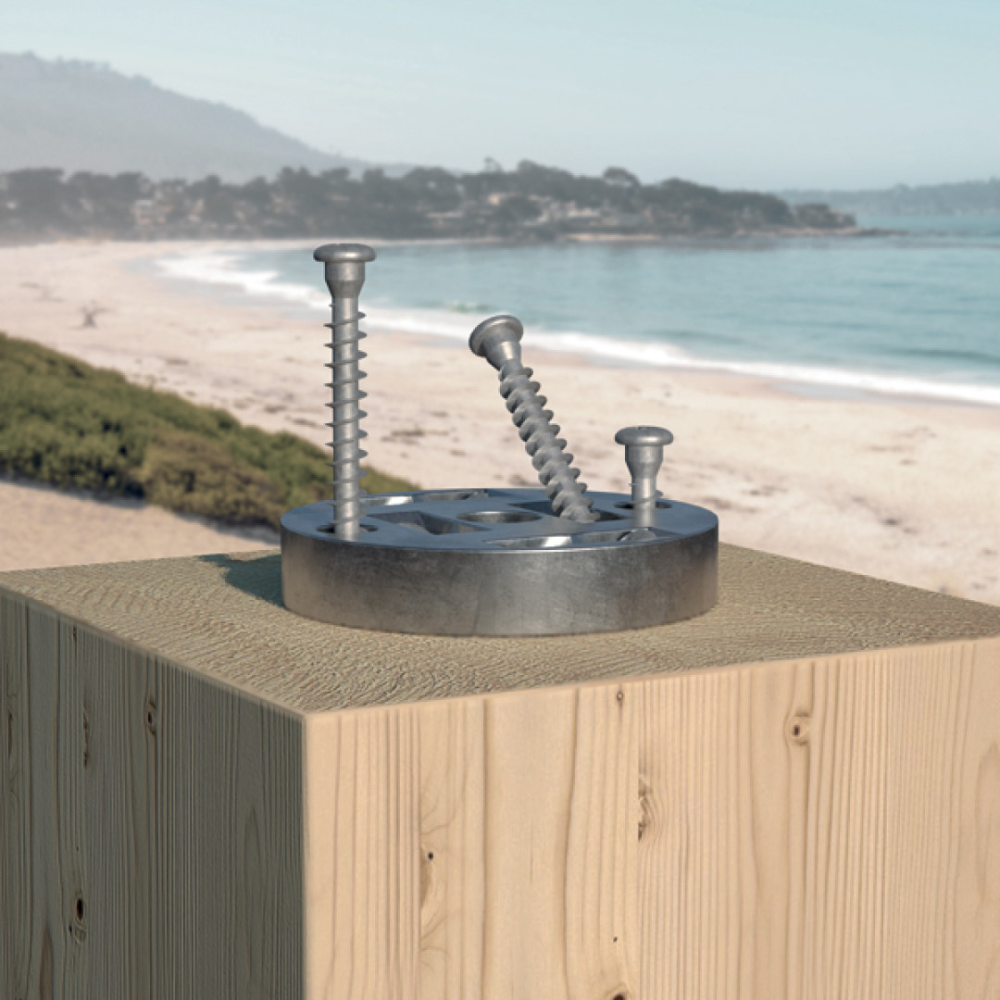 LBS EVO version designed for steel-timber joints for outdoor use. Achieves an interlocking effect with the hole in the plate, thus guaranteeing excellent static performance.