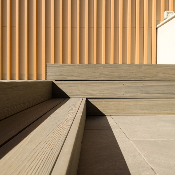 Composite decking is an eco-friendly alternative to timber, made from recycled wood fibres and plastics that reduce waste and minimise logging. With a longer lifespan than traditional wood, it cuts down on replacements, saving resources and energy. Unlike timber, it doesn’t need paints, oils or stains, lowering its environmental impact. Many brands also use efficient, low-pollutant manufacturing processes, making composite decking a durable, low-maintenance and sustainable choice for outdoor living.